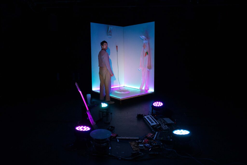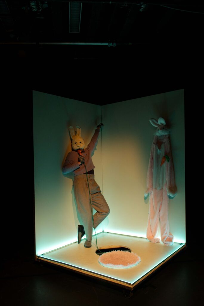Der Performer und seine Hasen hinterfragen aus unterschiedlichen Perspektiven das scheinbar Normale und geben dem inneren Drang nach, das Selbstverständliche als etwas Fremdes zu betrachten.