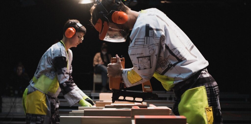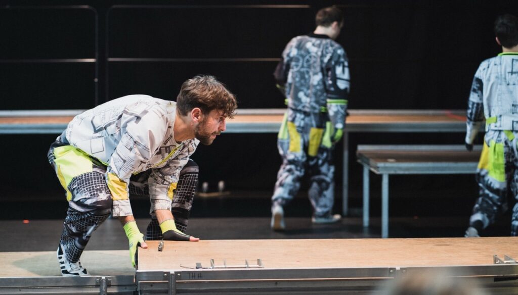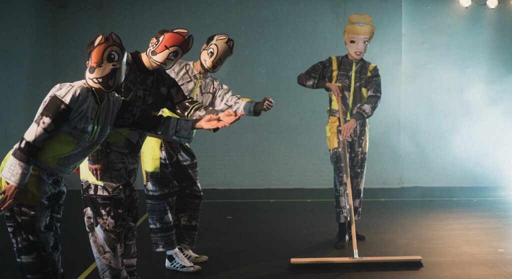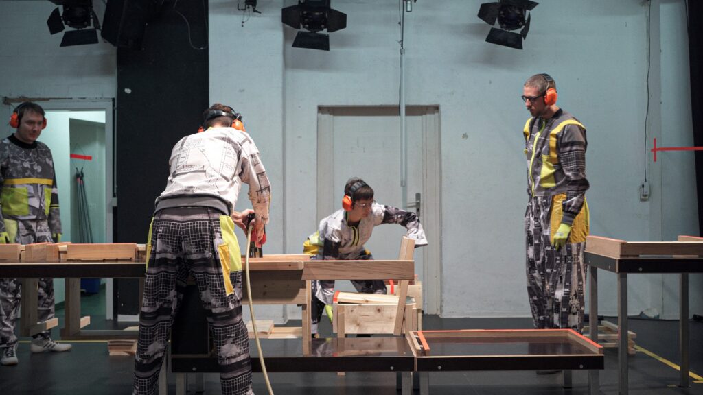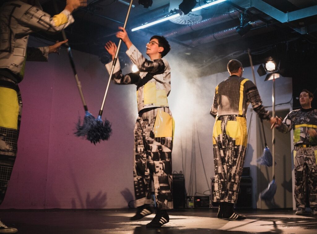 Mit ARBEIT IST KLASSE! untersucht VOLL:MILCH populäre Inszenierungen von Arbeit – Insbesondere die Verbindung von Arbeit und Musik und das Verhältnis von sichtbarer und unsichtbarer Arbeit. Tanzend geht das Kollektiv der Wirkmächtigkeit von Arbeitsbildern seit dem 19. Jahrhundert bis heute nach. Inspiriert von sogenannten Montagesequenzen aus Filmen und Serien wie Rocky oder Stranger Things, Modern Times oder dem LEGO MOVIE, Mary Poppins oder Breaking Bad, in denen (schwere) Arbeit schnell und effizient bewältigt wird, tanzt VOLL:MILCH eine choreographierte Arbeitsshow und sieht dabei KLASSE aus!
