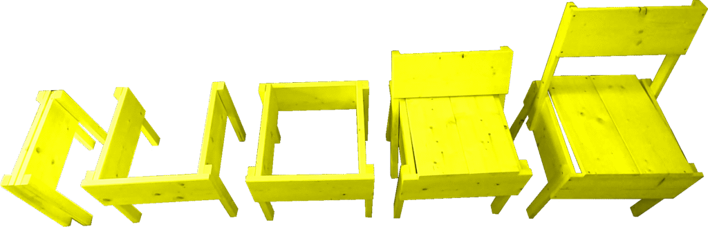 Ein Stuhlmodell von Enzo Mari, das 1974 in der Ausstellung Proposta per un‘Autoprogettazione lediglich als Bauanleitung präsentiert wurde.