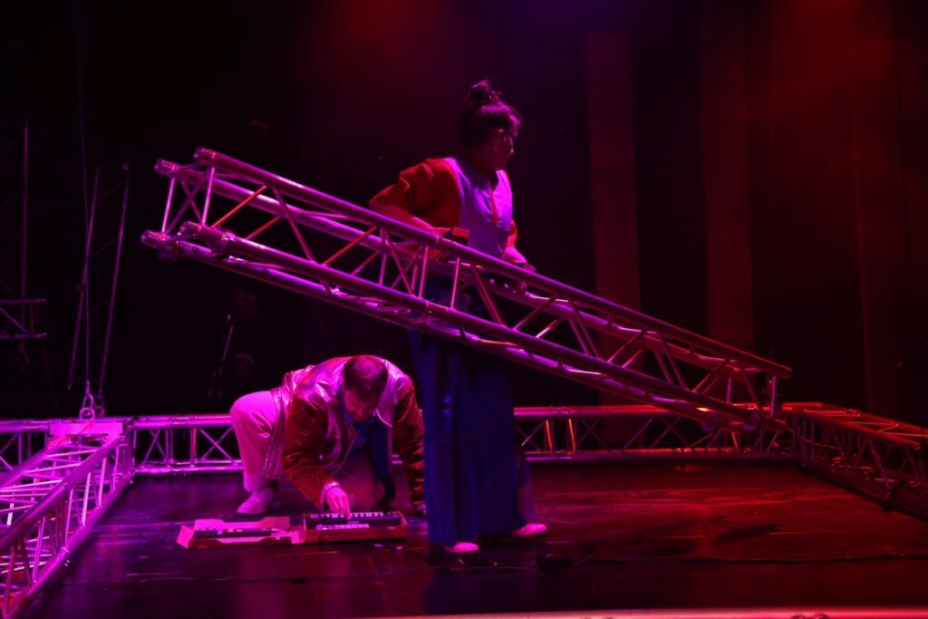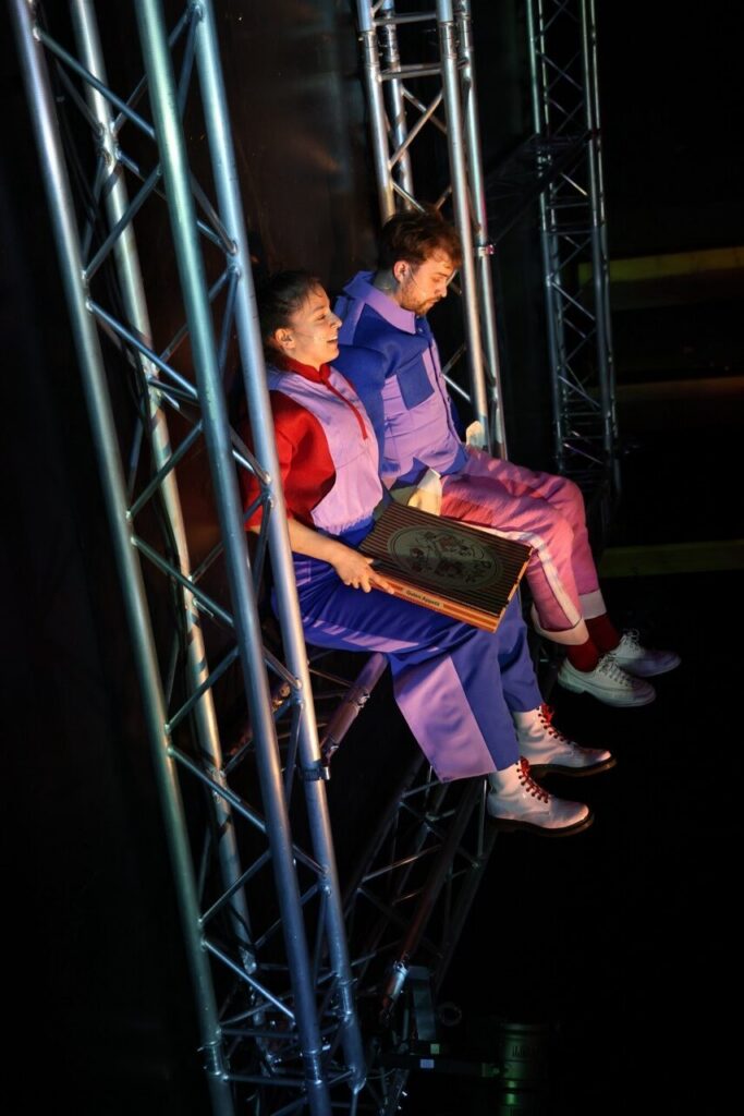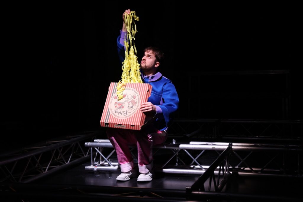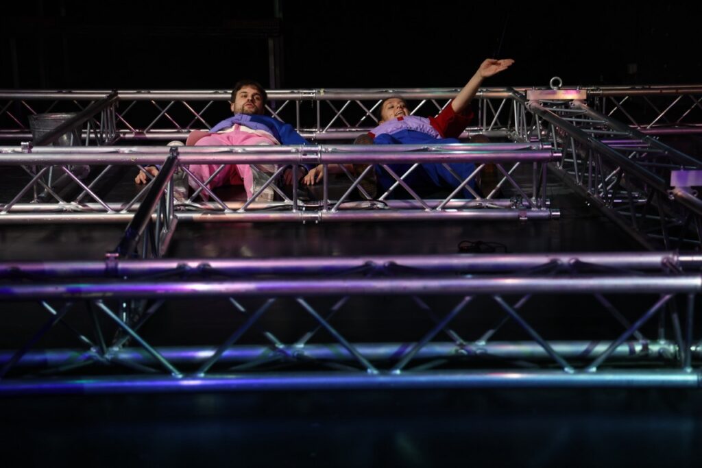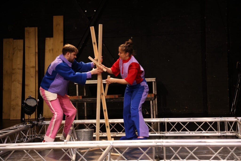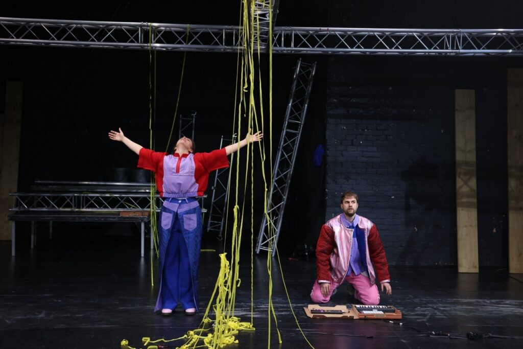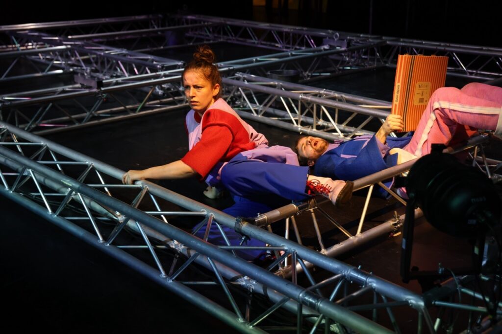 „How could you blame me? Growing up is chaotic.“ (Tate McRae) — Nachdem das Kollektiv Arnold&Bianka mit „Wie lang geht das noch?“ die Zeit gedehnt und die Langeweile untersucht hat, widmet es sich in seiner neuen Inszenierung dem absoluten Kontrollverlust: Chaos! Die Schule, die Arbeit, die Liebe und das Leben, wie schön, wenn sich alles in geordnete Bahnen lenken ließe. Wir planen, zählen, schreiben To-Do-Listen. Doch meistens scheitern wir schon daran, die Frisur aufrecht zu halten. So ein Chaos kann doch niemand wollen! Schließlich sind Unordnung und Unkontrollierbarkeit oft einschüchternd und das Unvorhersehbare beängstigend. Aber liegen im Chaos nicht alle Chancen? Kann es nicht auch befreiend sein, Hemmungen abzubauen und vor Überraschungen zu sprühen? Das Chaos hält nicht an, richtet sich nie ein und ist dadurch auch immer – uaaah was war das?! Mit „CHAOS!“ geht Arnold&Bianka dem Chaotischen nach, dem Spaß und den Gefahren, die es birgt. Die Inszenierung folgt dem Wunsch nach Unordnung (oder zumindest Umordnung) und stellt dafür erst mal alles auf den Kopf.