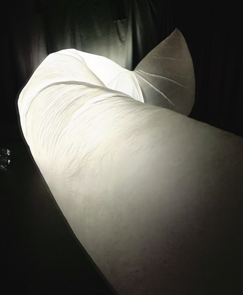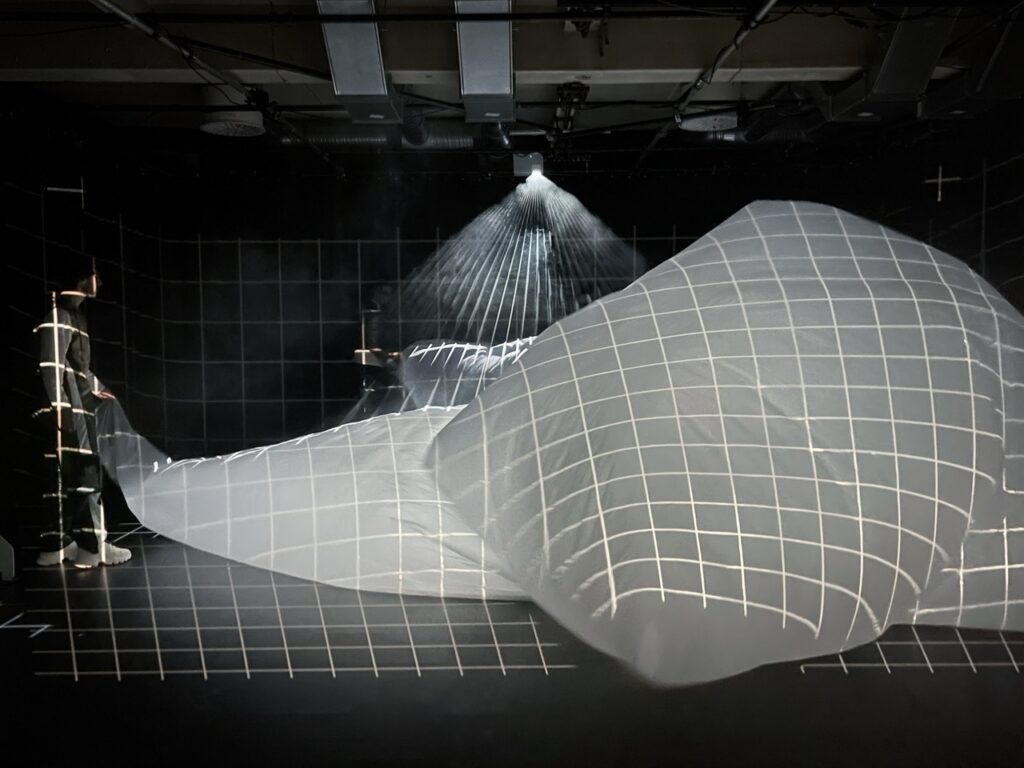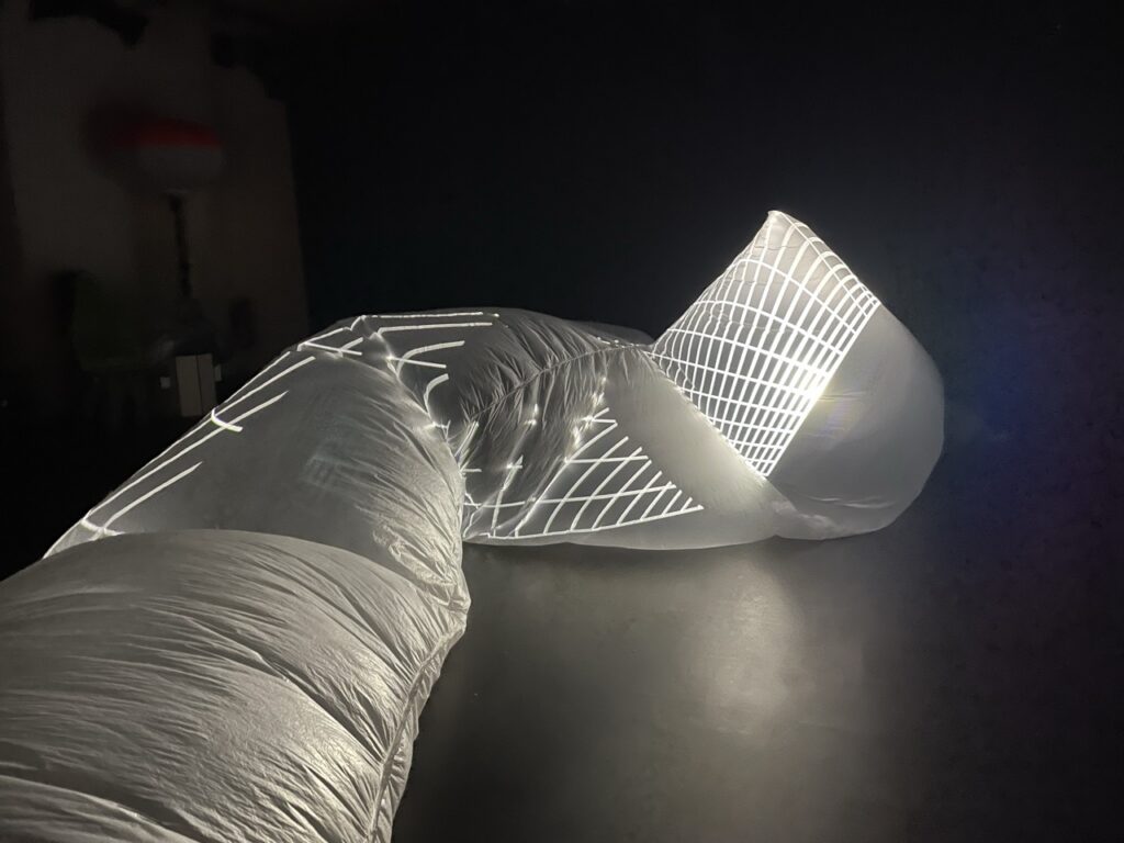 In der Residenz RAUM erforschte Anne Ferber Raum als dynamisches, veränderliches Element. Im Zentrum standen die Entwicklung und Materialerprobung von Inflatables – luftgefüllten, temporären Raumobjekten. Dabei testete Ferber verschiedene Folien‑ und Stoffqualitäten, sowie Techniken wie Kleben, Schweißen und Nähen, um zu untersuchen, wie Luftdruck Stabilität, Fragilität und räumliche Veränderung erzeugt. Ihre Experimente verdeutlichten, wie sich Raum durch minimale Eingriffe formen und im Zusammenspiel von Material, Licht und Bewegung als performatives Element erfahren lässt. Ferbers Arbeit versteht szenografische Praxis als prozesshafte Forschung, in der Raum nicht nur gestaltet, sondern selbst zum Akteur wird. Die gewonnenen Erkenntnisse setzte Ferber in zwei Produktionen des Theaterkollektivs VOLL:MILCH ein.